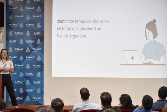 «La charla del viernes trató sobre un trabajo realizado en el marco de mi tesis doctoral», dijo Eugenia Haluszka, Data Science de la Facultad de Ciencias Médicas de la Uiversidad Nacional de Córdoba (UNC). Se título «Detección de temas de discusión sobre obesidad en Twitter Argentina». En este trabajo, el objetivo era poder reconocer aquellos aspectos sociales y culturales que atraviesan a una problemática tan compleja como es la obesidad. Para lograrlo, se recolectaron tweets generados por usuarios de Argentina donde se compartía contenido relacionado a la obesidad. Se agruparon palabras para reconocer patrones entre las mismas, a partir de las cuales posteriormente se contemplaron ejes temáticos. De esta manera, se reconocieron los principales temas que involucraban a la obesidad y su distribución.